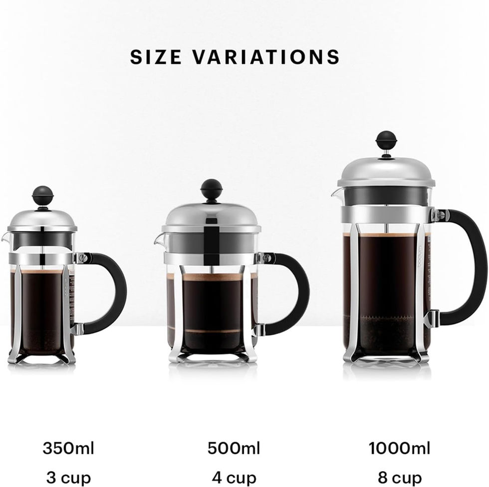 ボダム(BODUM)CHAMBORD シャンボール フレンチプレス コーヒーメーカーは、伝統的なデザインと高品質な素材を組み合わせた、スタイリッシュなフレンチプレスです。たっぷり2〜3杯分のコーヒーが抽出できる500mlサイズで、毎日のコーヒータイムを優雅に演出します。